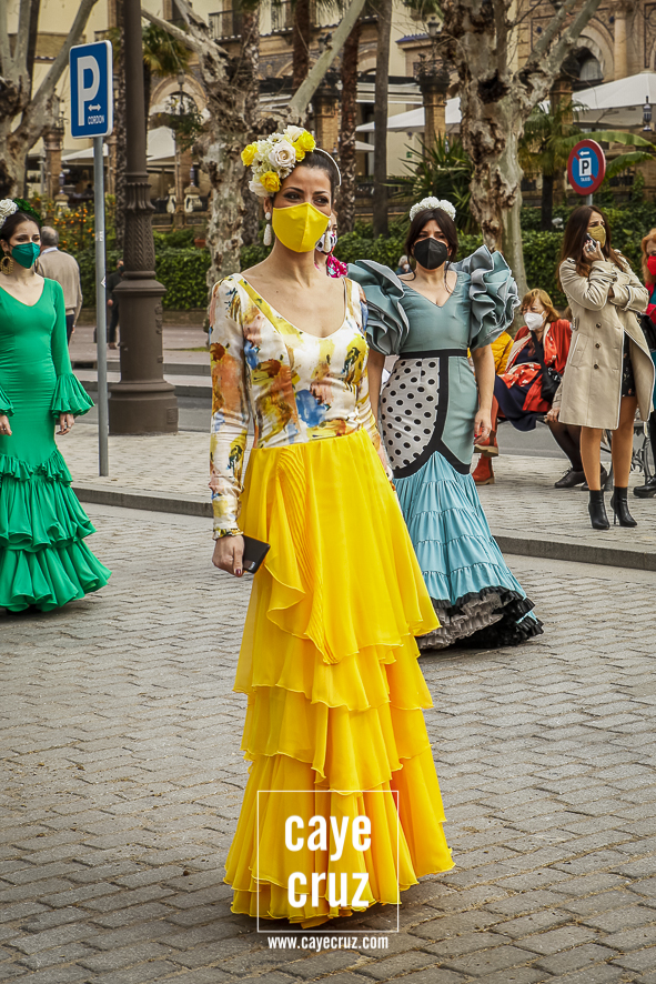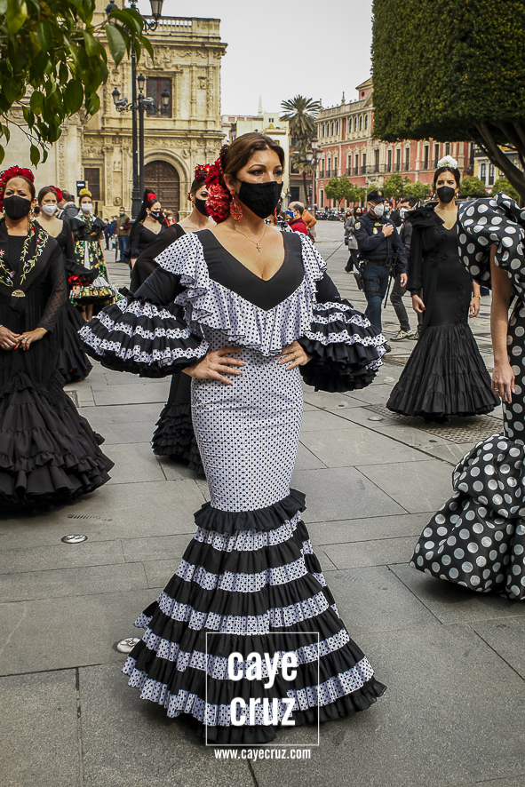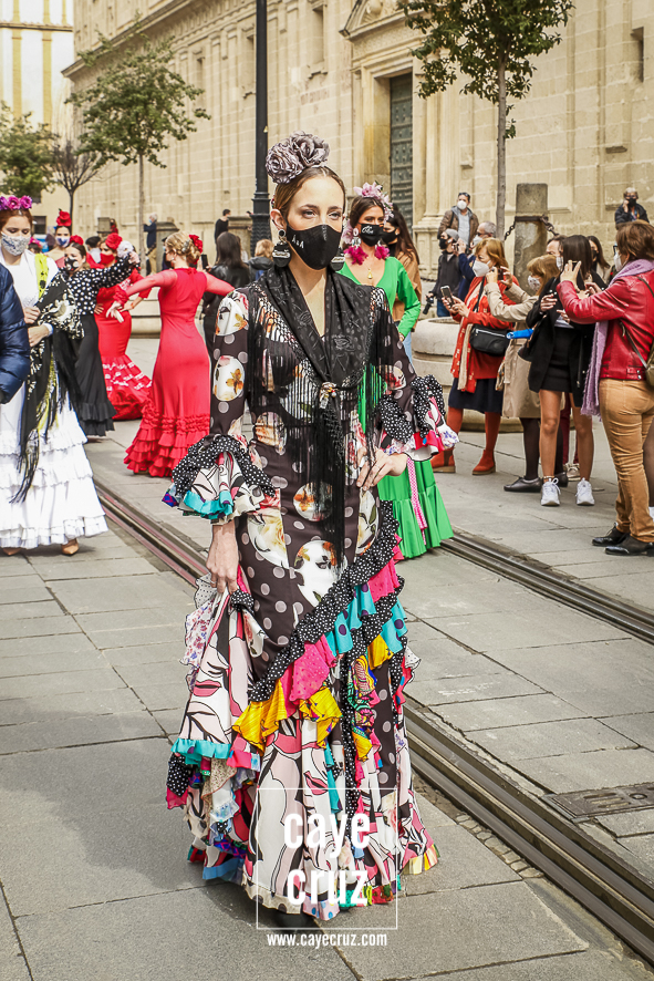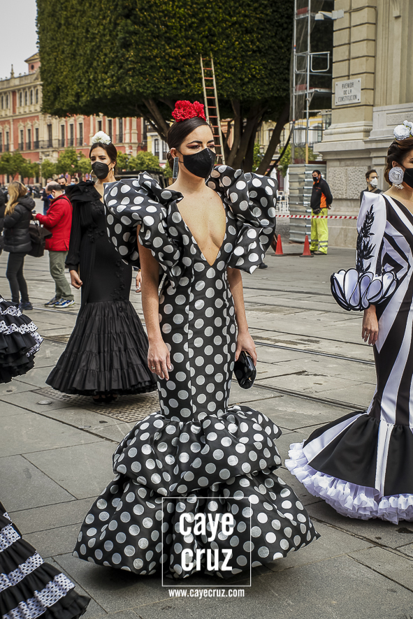 El movimiento LunarOff salió de nuevo a la calle. De 28 de octubre de 2020 a 26 de febrero de 2021. Esta vez con más flamencas, muchas de ellas mujeres que se plantaron allí con su traje con la única intención de apoyar al sector e incluso con esa ilusión propia de un primer día de Feria. Una emoción que recorrió esa carrera oficial que lucía desnuda de palcos (ahora mismo deberían de estar en pleno montaje) pues no habrá ni Semana Santa ni Feria: no habrá Sevilla en primavera en su percepción más genuina. Y la lucha de los volantes es una más para que, cuando se pueda, nuestras fiestas y tradiciones puedan volver y puedan demostrar que somos cultura y somos industria.