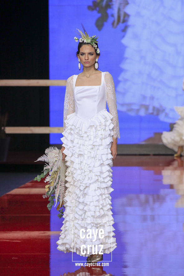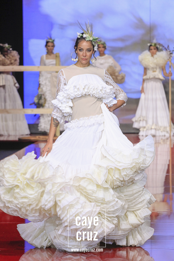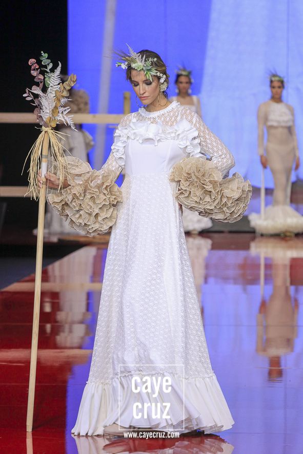 Si hace unos años me llegan a decir que la mejor colección de toda una edición de SIMOF iba a llegar un domingo, a las 12:30 horas del mediodía, por parte de una diseñadora primeriza en esta pasarela, con 40 trajes, con una flamenca pensada casi en exclusiva para romerías y procedente de Jaén… me habría reído. Y eso que quien esto escribe siempre defenderá que en cada rincón de Andalucía la moda flamenca se vive de una manera diferente, que todos los estilos son válidos siempre que respondan a la filosofía y al folclore de cada pueblo andaluz y que cada cual, a su aire, puede darnos grandes momentos. Pero, cosas del directo, el patrón a la hora de elegir los TOPs de la temporada al final, por varias razones, acaba siendo bastante centrista, dejando a veces a los que vienen de lejos como simpáticas aportaciones.