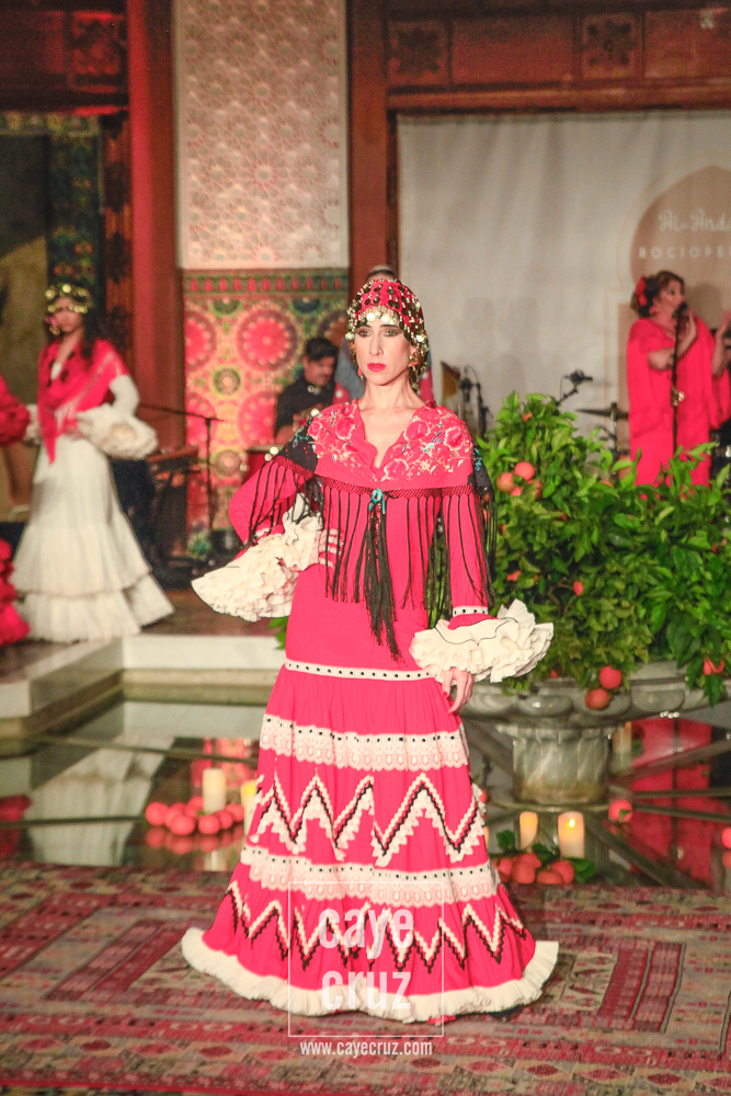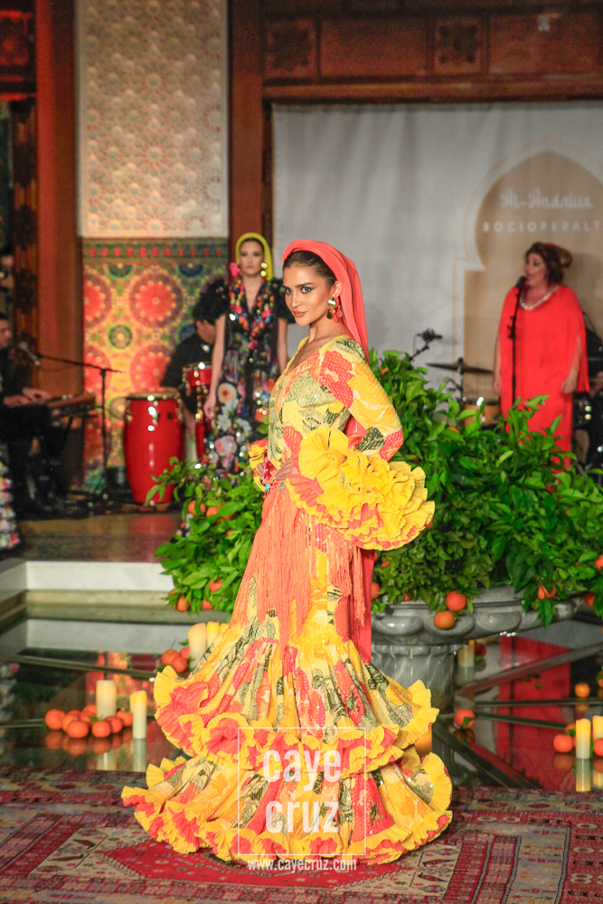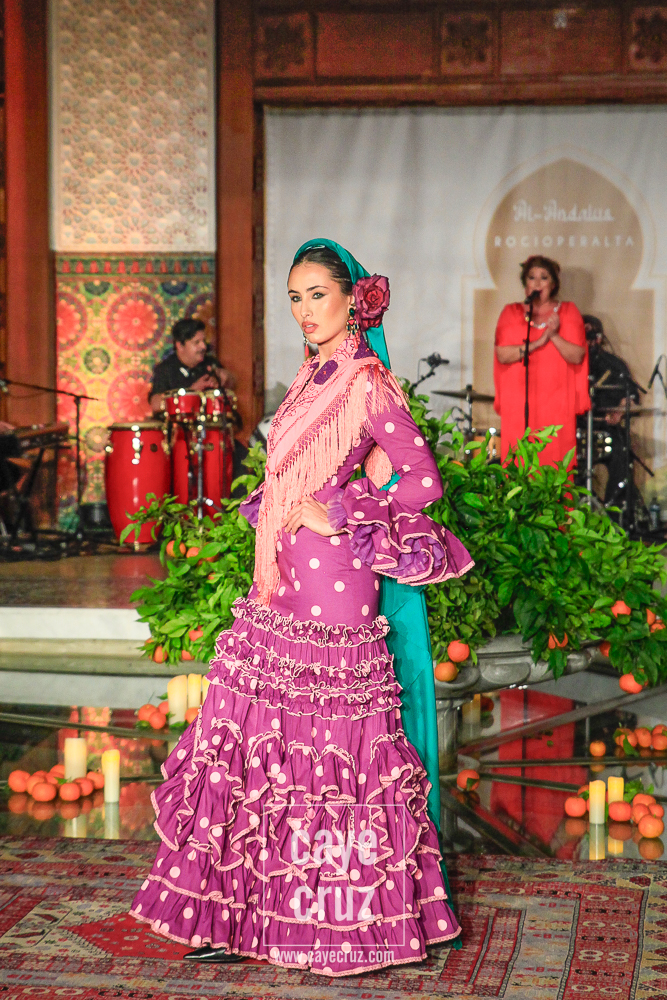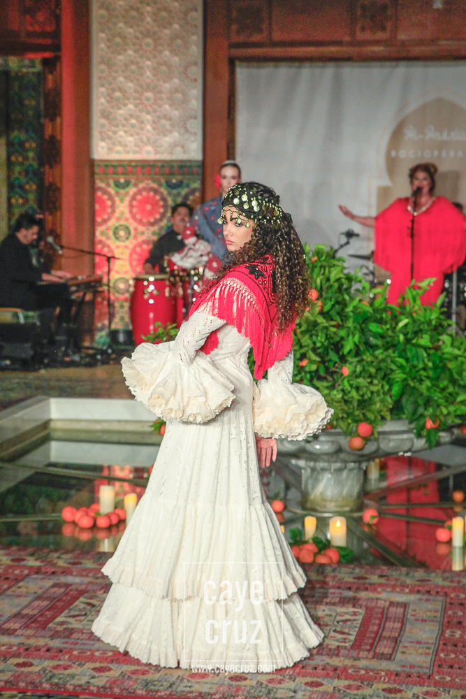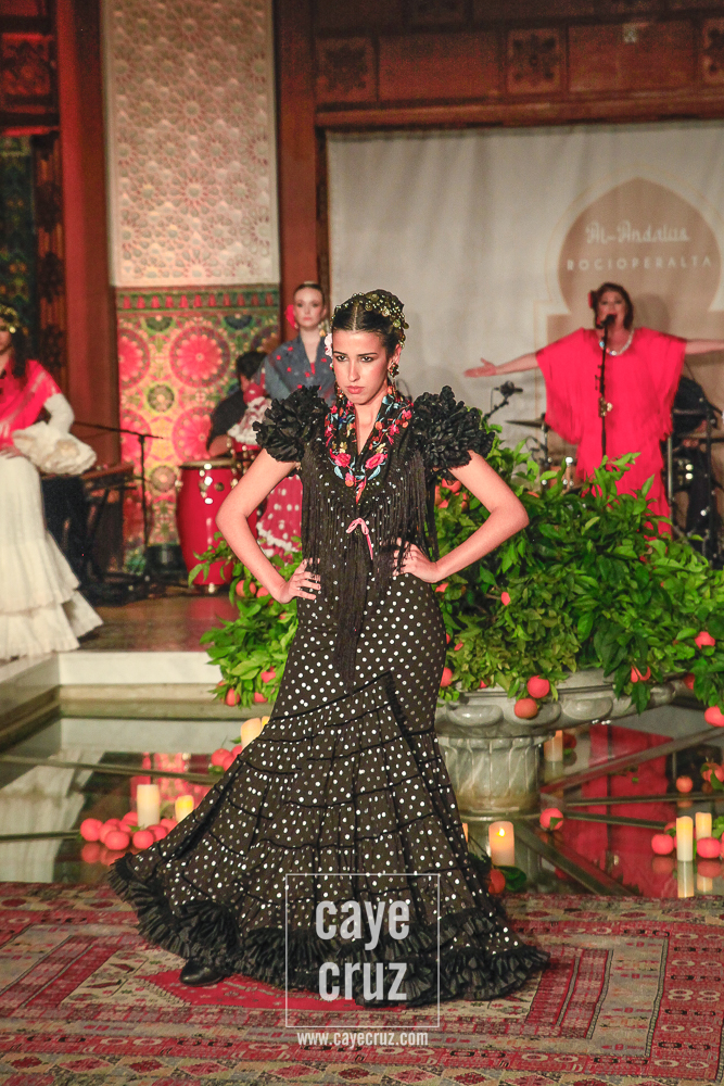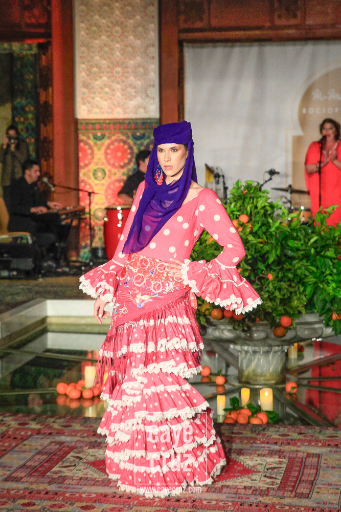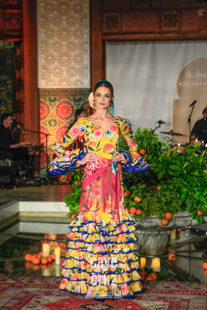 En un 2026 en el que la flamenca busca lo tradicional (y no precisamente por carencia económica), el viaje nos lleva cerca, a un Al Andalus con la caracterización o el estilismo muy en su sitio, al igual que la localización, la sede de la Fundación Tres Culturas. Por allí pasaron 40 modelos (literalmente, fueron 40 trajes sin que ninguna de ellas repitiese salida) con las que se sacó partido al espacio, creando un recorrido propio de desfile de tiempos pasados (es decir, sin pasarela) y una coreografía que, todo hay que decirlo, se desarrolló sin apenas fallos del directo.
