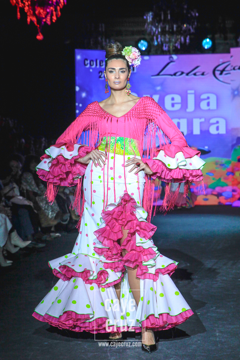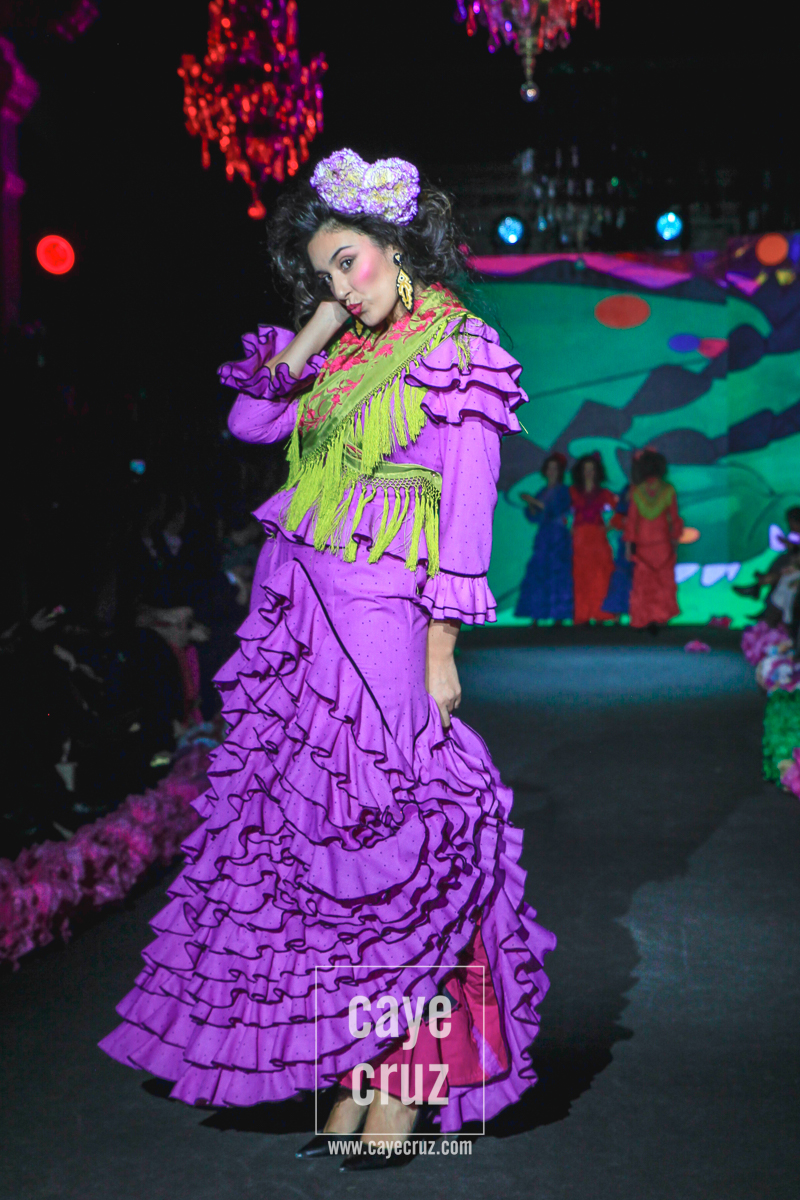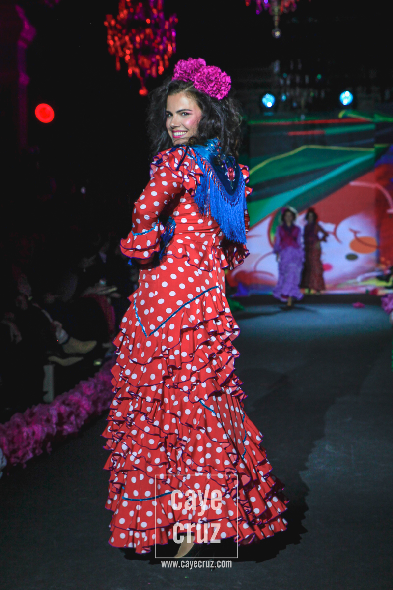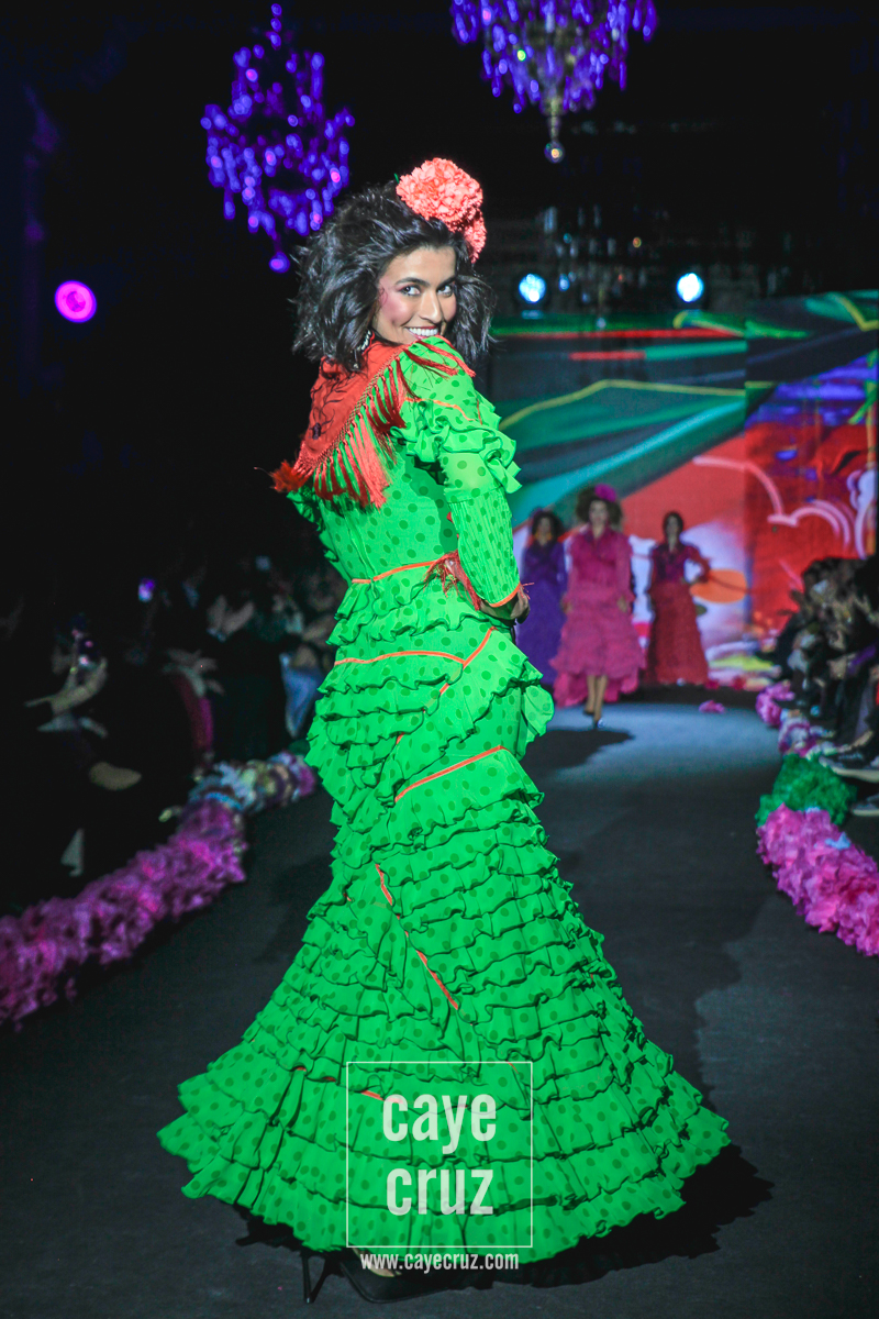 Rocío Olmedo, ‘Fiesta’. Ya lo decía Cindy Lauper: las chicas solo quieren divertirse. Y si te lo dice Rocío Olmedo, tú lo compras. La sevillana es de esas personas con un carisma natural que logra hacer partícipes a los demás de lo suyo, ella hace porque quieras acompañarla aunque sepas perfectamente qué flamenca te va a plantar: cortes a la cintura, mucho volantito al hilo, faldas que quieren moverse, mantoncillo obligatorio y lunar (mayoritariamente negro). Estilo clásico y netamente de caseta de un módulo que, con otro planteamiento, se haría monótono, pero ella quiere divertirse, contagia esas ganas a las modelos, ellas lo propagan al desfilar y al final le queda un show la mar de entretenido con unas flamencas que saben que cuanto más chunga es la caseta más guapos son los chicos mejor es la Fiesta.
