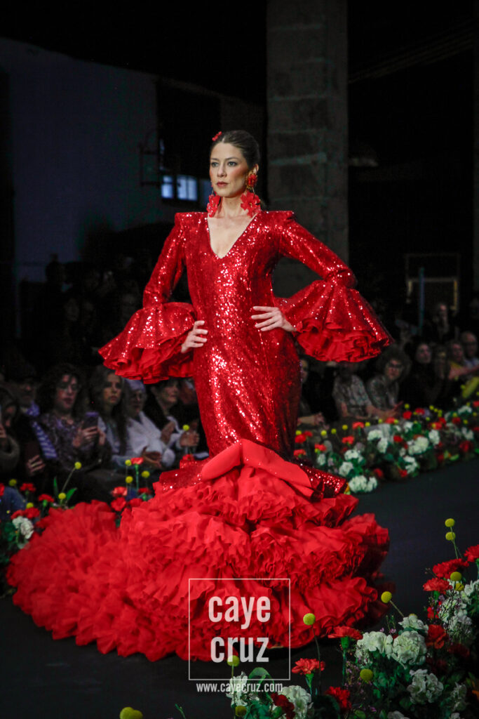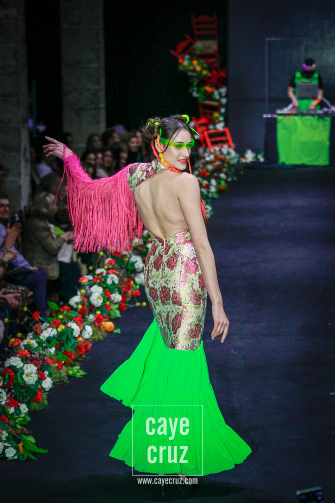 David Rodríguez, ’90 arrobas’. Que su nombre apareciera como el de apertura de la pasarela era una gran noticia: un diseñador con experiencia pero ajeno a las pasarelas (y jerezano) dando su punto de vista de la flamenca en su tierra. Lo que no vimos venir es que las arrobas fueron más hacia lo comercial que a lo rompedor: quienes esperábamos ver una flamenca Drag o un volante travesti nos encontramos unos trajes ricos en volúmenes, entregados al color block y al volante exagerado, pero con el estilo comedido y pensando más en la clienta del albero que en la de escenario, eso sí, el cierre con bata de cola de lentejuelas sirvió para recordar de donde viene. Quizá esta primera toma de contacto (a la que le faltó salirse del guion) sirva para que David gane en confianza (y clientela) y pueda así ir a más en pasarela en próximos años. La semilla está ahí, solo falta que germine.