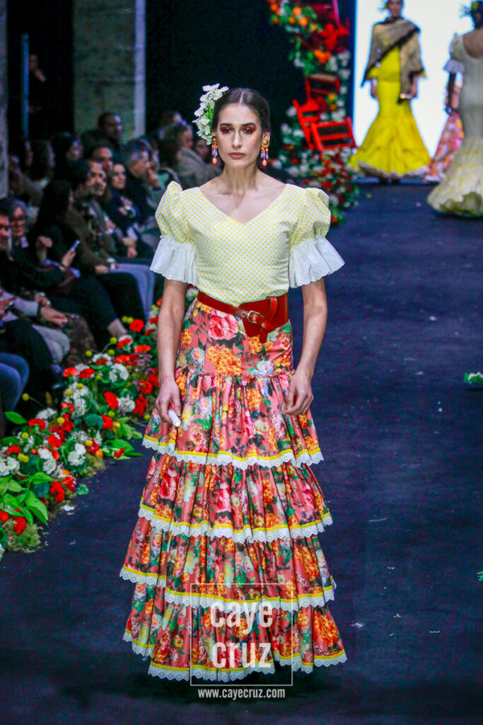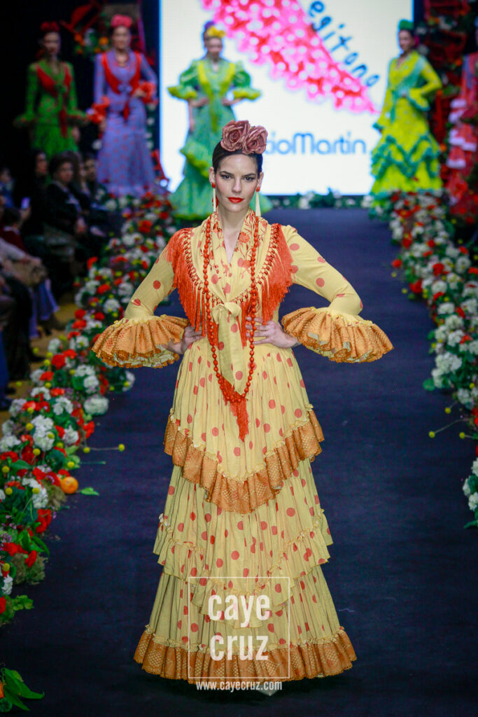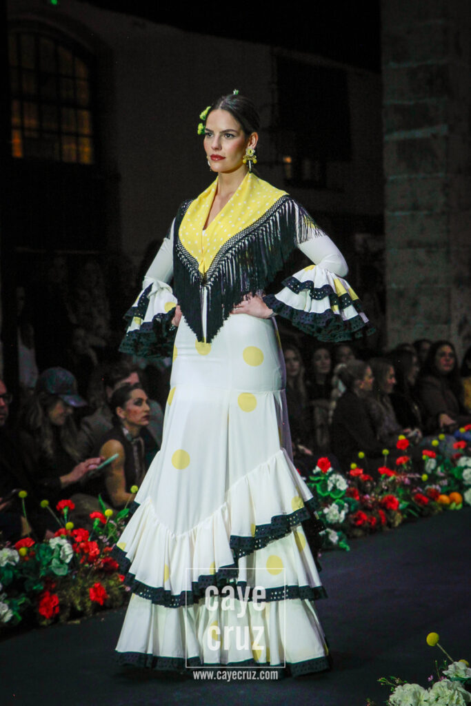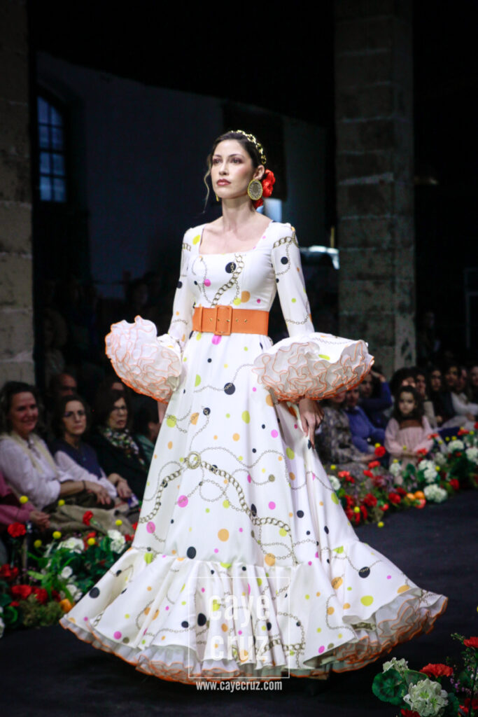 Rocío Martín, ‘De Lunares‘. como su nombre indica y sin apenas salirse de la línea: las hermanas Martín se entregan este año a los lunares y a las combinaciones de color en una propuesta clásica. Flamenca de siempre con un comienzo que mira al Rocío (como viene siendo habitual en ellas), pasa luego por la presencia de los marrones y finaliza en un estallido cromático muy feriante que aprovecha las posibilidades de los tonos más saturados para dar brío a los volantes o para dar (quién sabe si de manera intencionada) una batería de parejas de colores que funcionan muy bien juntos.