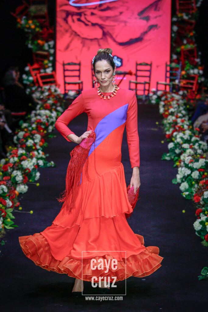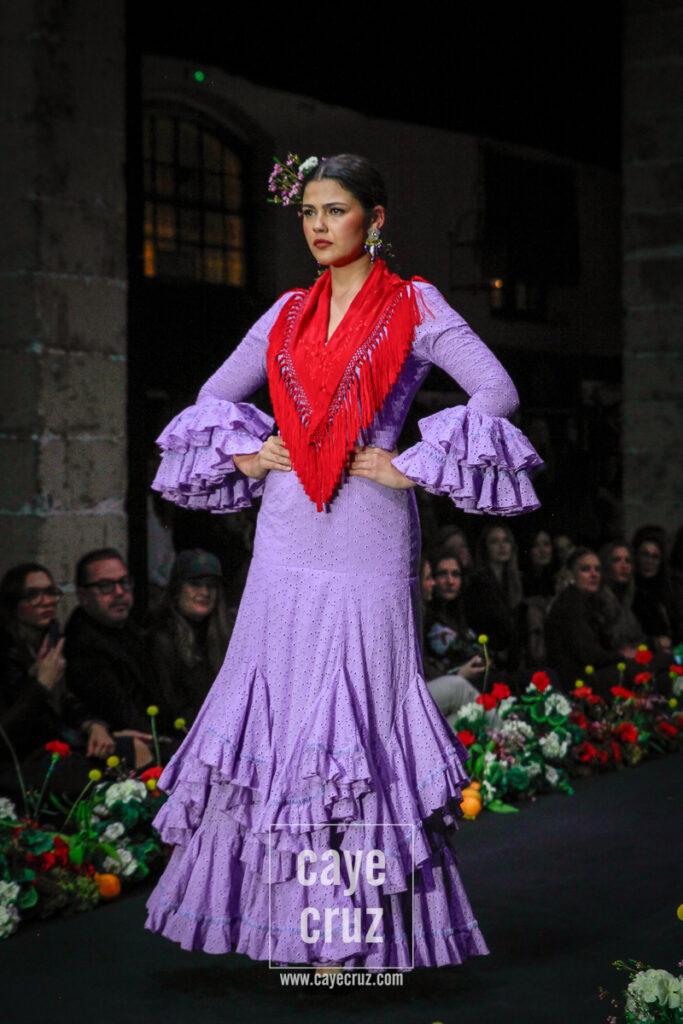 Flamenka, ‘Salvaje’. Cuando llevas muchos años en pasarelas, no solo identificas el estilo o por donde va una firma, también puedes darte cuenta hasta de su estado de ánimo (literal). Digo esto porque las hermanas González llevan dos años en estado de gracia. No inventan la rueda (ni lo intentan), son clásicas y les encanta un traje de toda la vida con su mantoncillo, pero ese final de rojos y lilas/morado/violeta, esa combinación de colores con lunares de galleta, o ese comienzo incorporando capas o ponchos, nos dejaba claro que las ideas de las Flamenka están muy claras y muy en su sitio.
