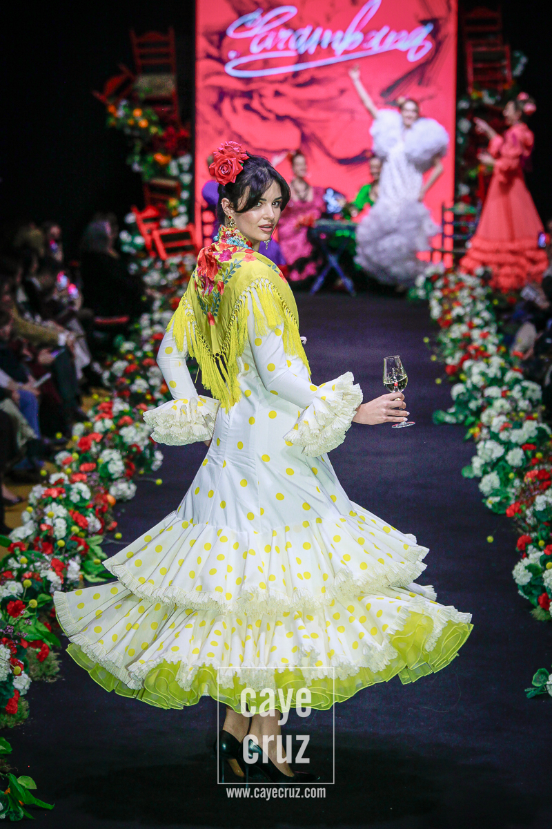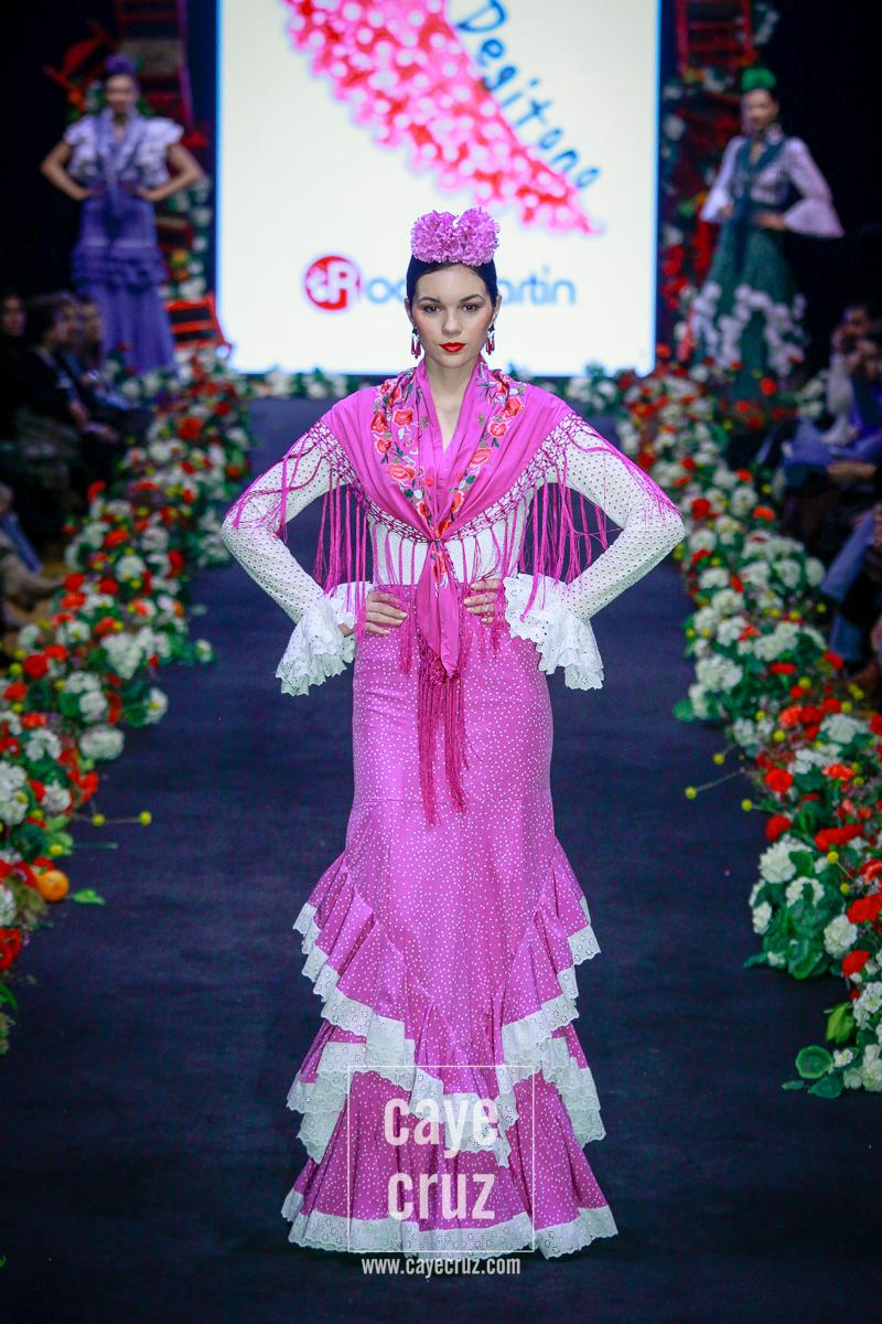 Rocío Martín, ‘De Lunares‘. como su nombre indica y sin apenas salirse de la línea: las hermanas Martín se entregan este año a los lunares y a las combinaciones de color en una propuesta clásica. Flamenca de siempre con un comienzo que mira al Rocío (como viene siendo habitual en ellas), pasa luego por la presencia de los marrones y finaliza en un estallido cromático muy feriante que aprovecha las posibilidades de los tonos más saturados para dar brío a los volantes o para dar (quién sabe si de manera intencionada) una batería de parejas de colores que funcionan muy bien juntos.
