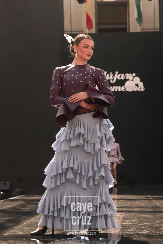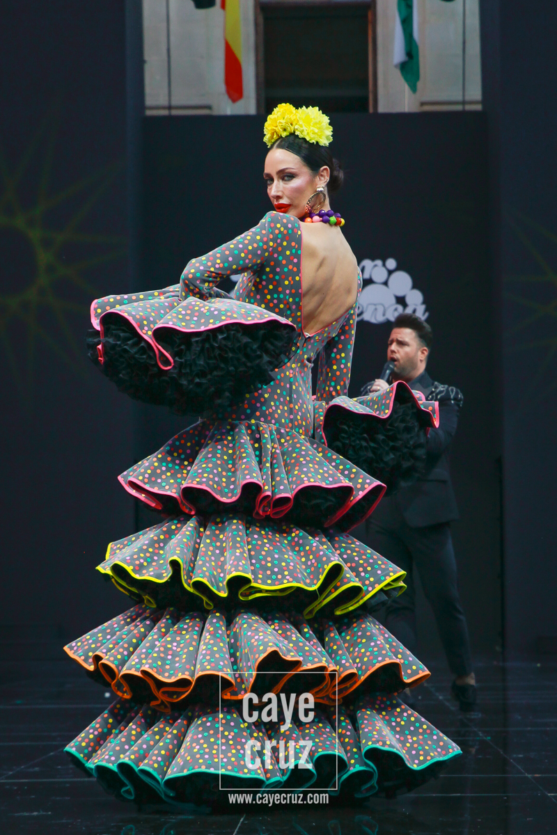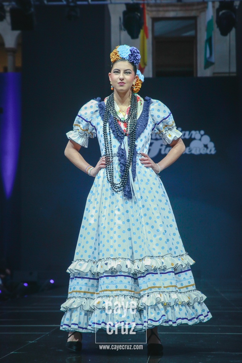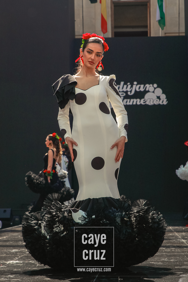 Pedro López, ‘Raigales‘. Una pregunta que me ha surgido con varias de las colecciones que repasamos en este post es la de: ¿Hasta qué punto se ha hecho esto de manera intencional? Pedro López no es oriundo de Andújar, es más su colección estaba pensada para verse en más de una pasarela y darle a conocer. Ahora bien, pocas veces el premio de ‘Muévete Flamenca’ ha sido tan propio y contextualizado pues esta propuesta de flamencas de sabor añejo, colores campestres y maximalismo en volantes se antoja perfecta para las estampas que nos regala el Cerro del Cabezo a final de Abril. Todo ello en ocho trajes ideados con mucho gusto, acierto en la combinación de lunares y detalles que tienen un pie en el costumbrismo de los años 90 y ese «mírame, aquí estoy yo» de la flamenca actual. Un buen ganador de noveles que sabe dibujarse y tiene aquí una línea por la que seguir.