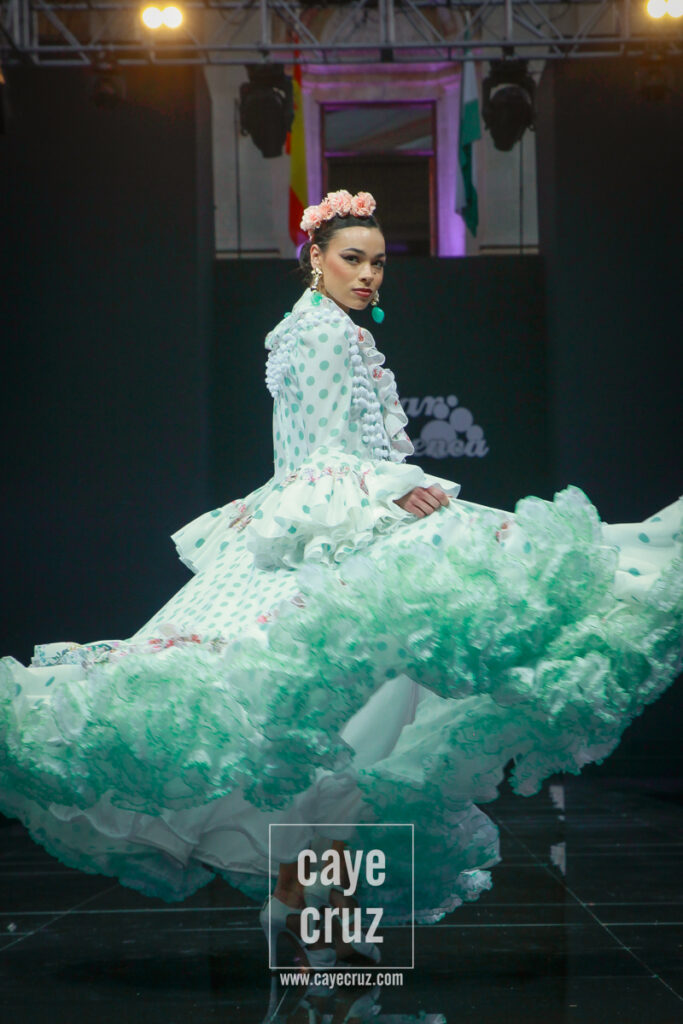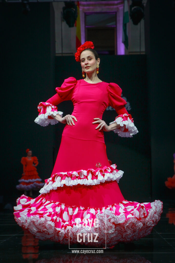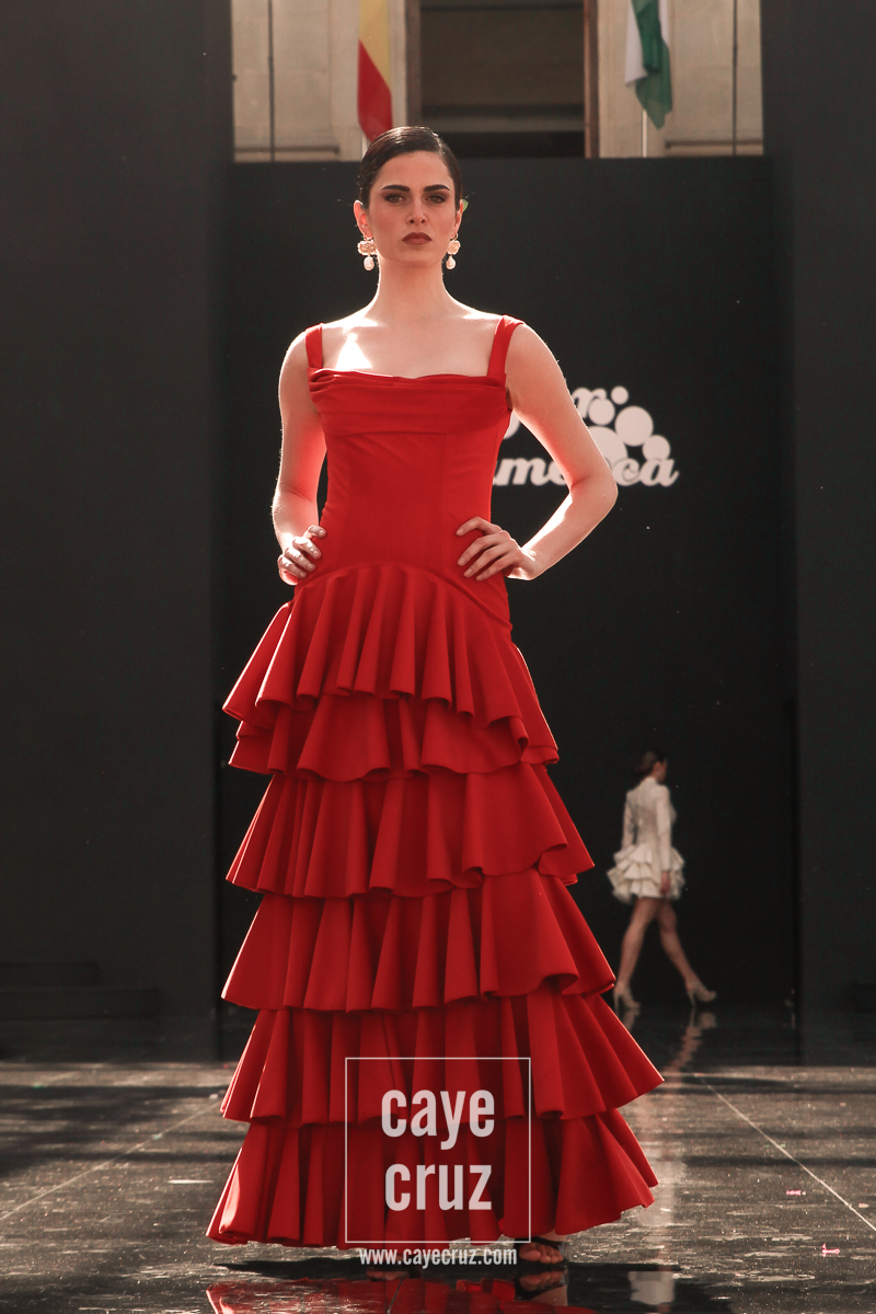 Mari Carmen Sáez, ‘Reliquias’. Hay un fenómeno en la moda flamenca que se repite bastante pero que carece de nombre cuando debería tenerlo, porque pasa muy a menudo. En un sector donde se nota fácilmente quién tiene formación en moda y quien sabe de costura es habitual que quien se maneja bien con una máquina de coser juegue a creerse que puede vender un concepto cual alumno de escuela de moda. Eso pasa en ‘Reliquias’: Mari Carmen Sáez vende una idea y monta un desfile hablando de Reliquias, de actualizar los trajes de flamenca de finales de los 80 o primeros 90 y traerlos al 2026. Sobre el papel la idea es interesantísima: renovar trajes que muchas tenían guardados para darles un aire nuevo. Llegados a la pasarela el planteamiento se queda en intenciones: referencias a las Reliquias al principio y al final con un grueso de colección de trajes que sí, bien hechos y bonitos, pero que no se distinguen de los que aparecen en cualquier cuenta de instagram. A eso me refería al principio: ¿Cuántas colecciones de cortes estandarizados hemos visto jugando a ir de conceptuales? Pues eso. Mari Carmen Saez tenía una buena idea, una opción de mostrar algo propio en medio de una flamenca saturada aprovechando su buen hacer en costura, pero prefirió poner piloto automático y hacer una colección por/para reel de instagram. Y lo que es peor: el haber dado poco uso a una buena idea ya sabemos como acaba (Spoiler: alguien la explotará el año que viene o el siguiente).